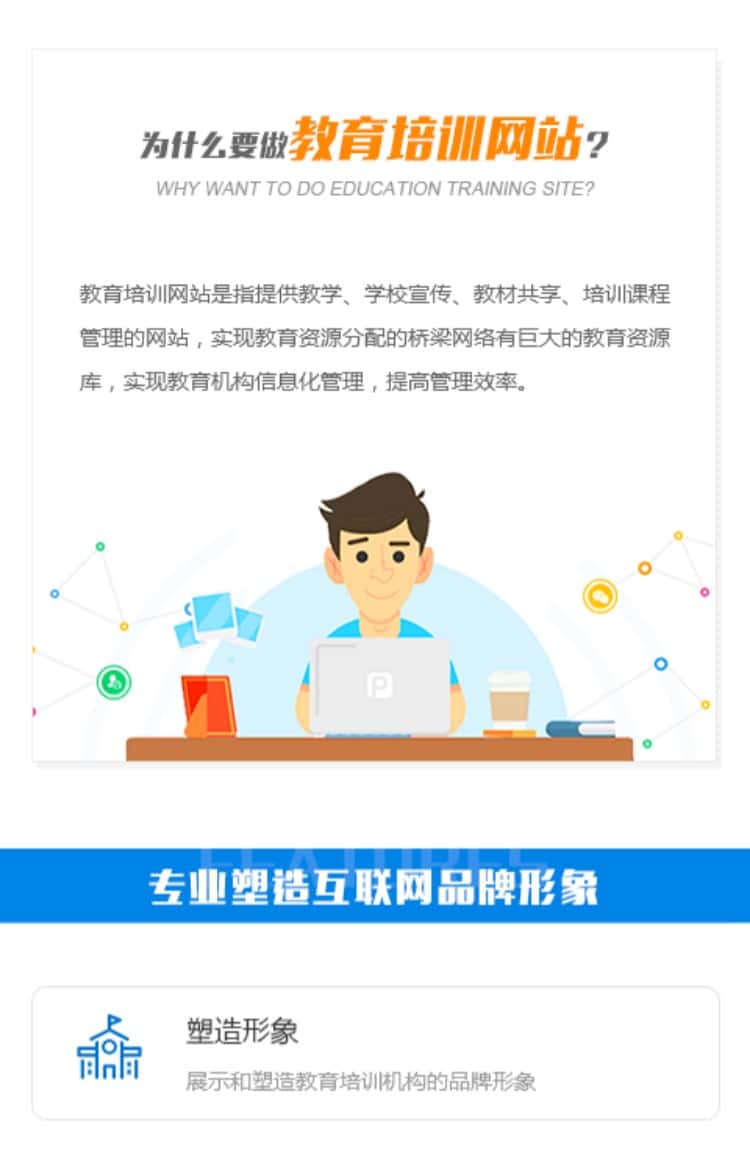 教育培训网站是指提供教学、学校宣传、教材共享、培训课程管理的网站,实现教育资源分配的桥梁网络有巨大的教育资源库,实现教育机构信息化管理,提高管理效率。